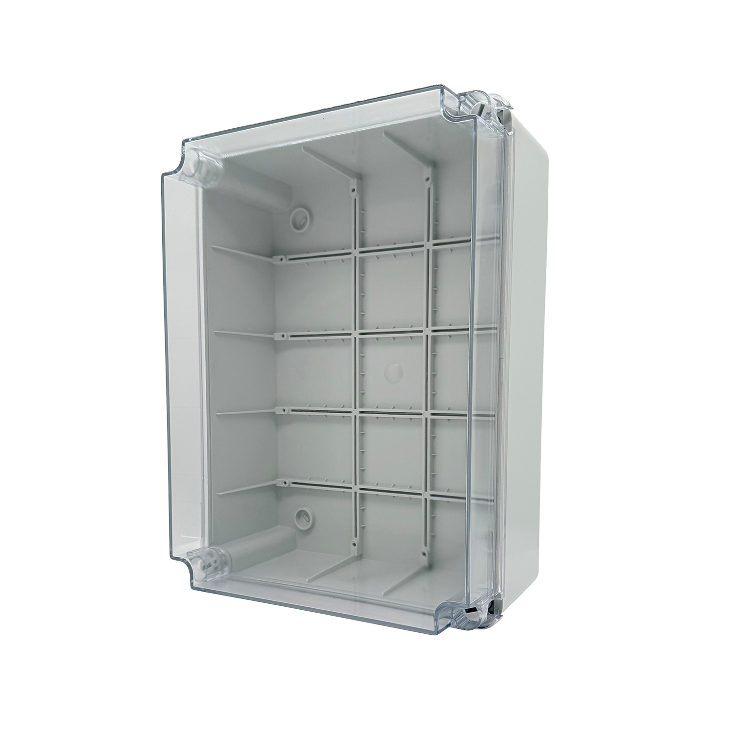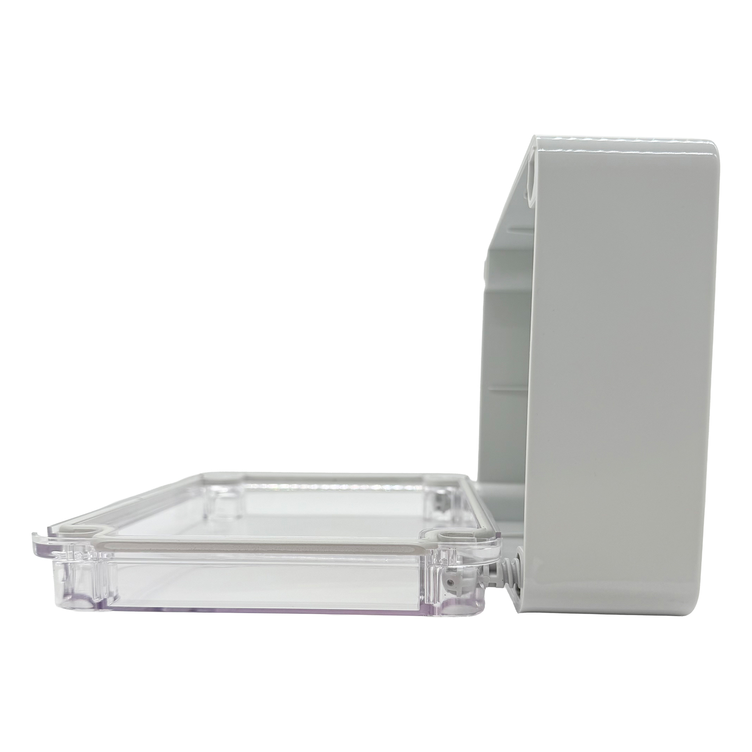 Progettata per il montaggio a parete, la scatola è dotata di guarnizione integrata continua. Un dettaglio pratico: il coperchio trasparente può essere appeso durante il montaggio o la manutenzione senza dover essere completamente rimosso. Ciò facilita la gestione e fa risparmiare tempo – non è più necessario appoggiare il coperchio.