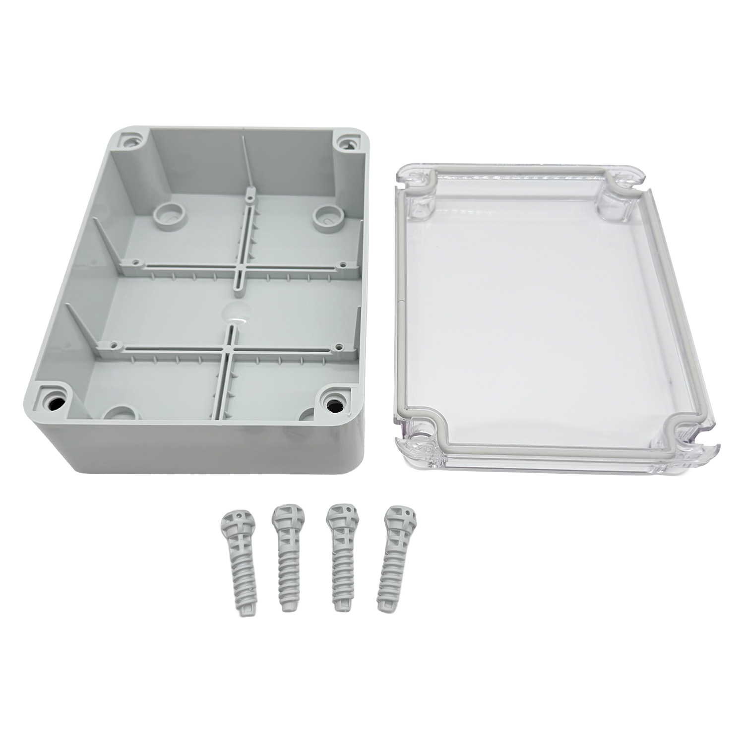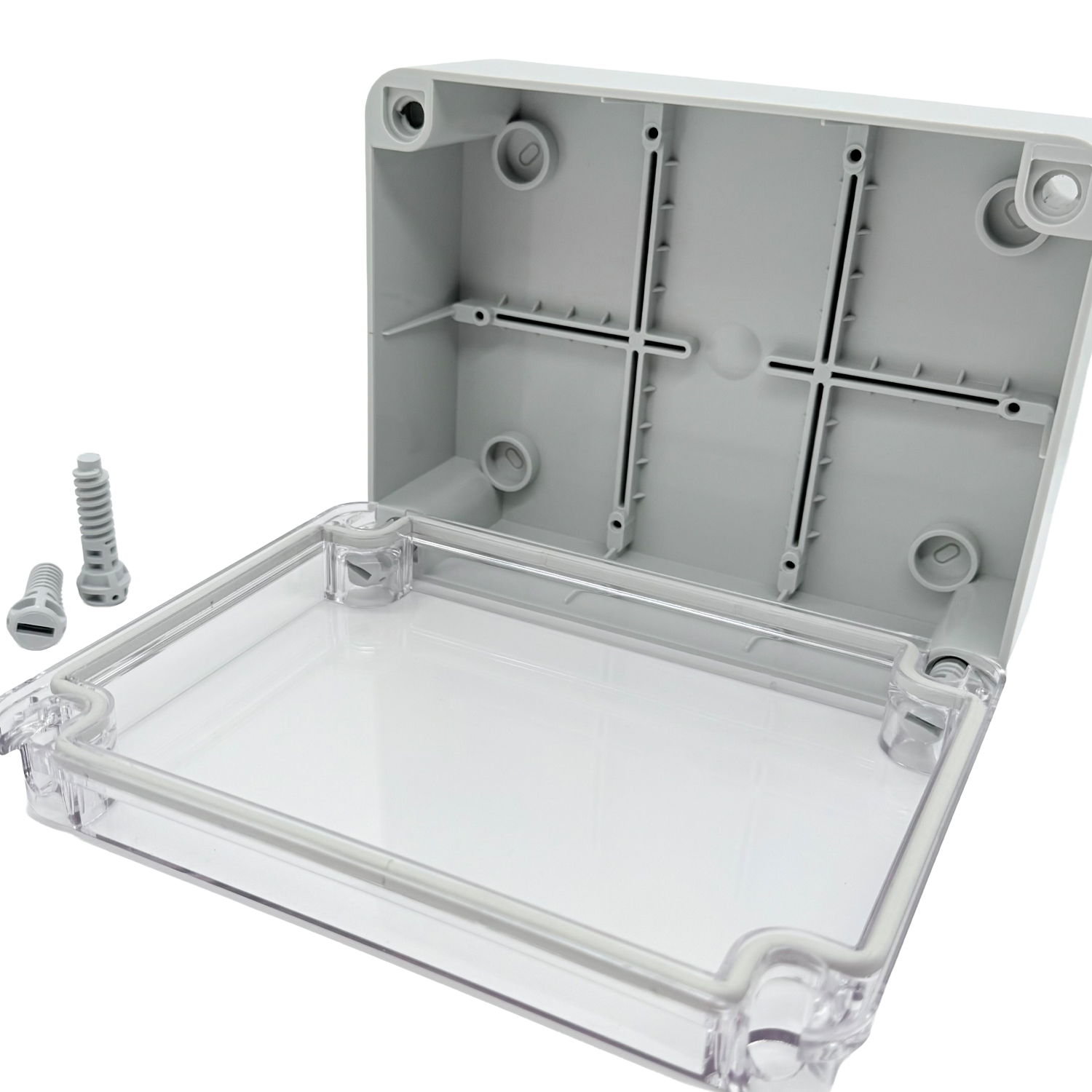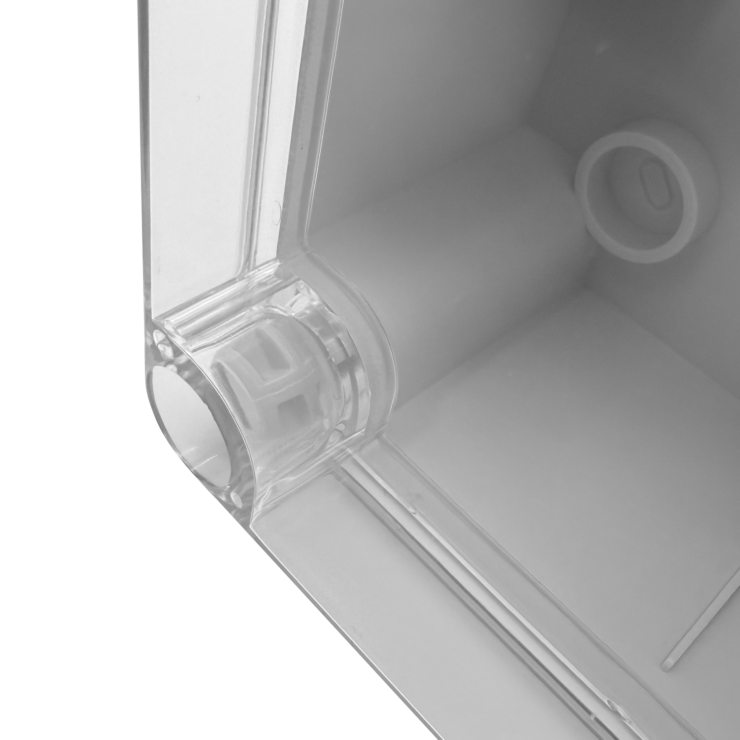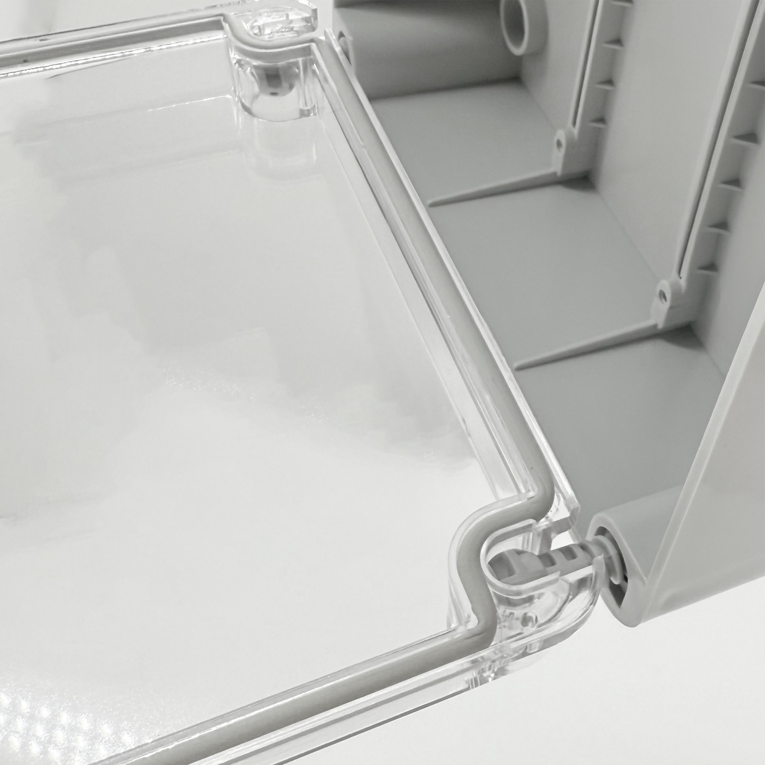 Progettata per il montaggio a parete, la scatola è dotata di guarnizione integrata continua. Un dettaglio pratico: il coperchio trasparente può essere appeso durante il montaggio o la manutenzione senza dover essere completamente rimosso. Ciò facilita la gestione e fa risparmiare tempo – non è più necessario appoggiare il coperchio.