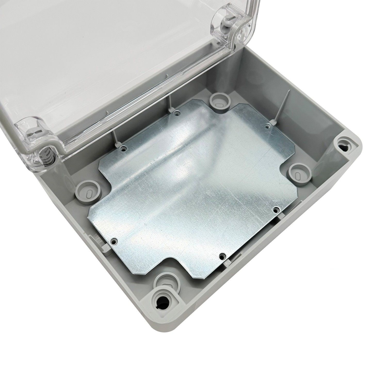 Progettato per il montaggio a parete (a vista), l’alloggiamento è dotato di una guarnizione integrata continua su tutto il perimetro. Un dettaglio pratico: il coperchio trasparente può essere agganciato durante il montaggio o la manutenzione senza dover essere completamente rimosso. Questo facilita la manipolazione e consente di risparmiare tempo – non è più necessario appoggiare il coperchio.